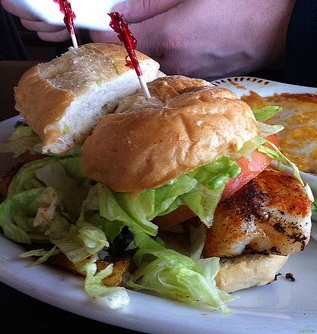 - Spread some yogurt on the SWG buns, and add a slice of tomato and mound of shredded lettuce. Top with the blackened fish and munch away!
